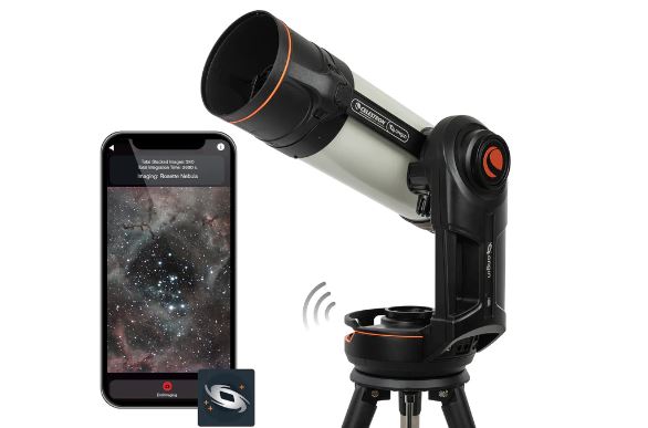 Celestron Origin: another smart telescope that works with iOS and Android devices. It features a 6″ Rowe-Ackermann Schmidt Astrograph optical design and uses AI algorithms to process data and deliver sharp, vivid colors.