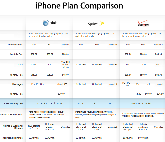 iPhone 4S will be available in 3 models. 16GB, 32GB and 64GB iPhone 4S units will sell for $199, $299 and $399 respectively. These will require you to sign up for a 2 year contract with your carrier of choice. Not sure which plan works the best for you? Apple has put together a table that compares what you get from each carrier.