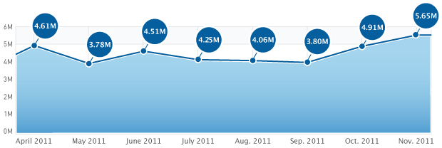 0The year 2011 has been a mixed year for Apple fans. Apple did not release the iPad 3 or iPhone 5 this year. But it has managed to still sell a ton of new iPhones and iPads and continues to be dominant in the markets it is involved in. It is true that Android continues its steady growth. But a recent report by ComScore suggests that Apple has increased its share of mobile subscribers in November. The survey shows Apple growing its share to 11.2% (up by 1.4%) in November 2011. The biggest victim here seems to be RIM as it is losing ground quickly.