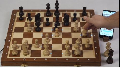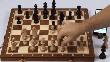 0Smartphone connected chessboards are nothing new. The Square Off, Chessnut Air, and Millennium Chess computers are all capable of connecting to your iPhone for online play. The iChessOne is also worth a look. It is a wooden foldable electronic chessboard that lets you play online chess on a real board. It has LEDs to show you where to move the pieces.