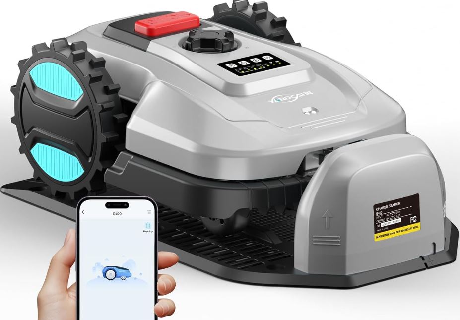 Here is another robotic mower that combines with your phone to let you cut grass without breaking a sweat. The Yardcare App-Controlled Robotic Mower can overcome 25-degree slopes. It has an adjustable height from 0.8 to 2.4 inches. It has a 7.87 inches mowing width. This robot has a tilt sensor, so if you lift it, the blade will stop rotating.