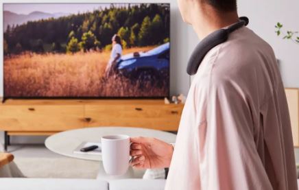 This is the Sony BRAVIA Theater U Speaker: a wearable TV speaker with 360 spatial sound that provides you with surround sound audio as you watch your favorite content. It connects to your devices via Bluetooth. It has a microphone built-in and supports multi-point connections, so you can use it with two devices simultaneously.